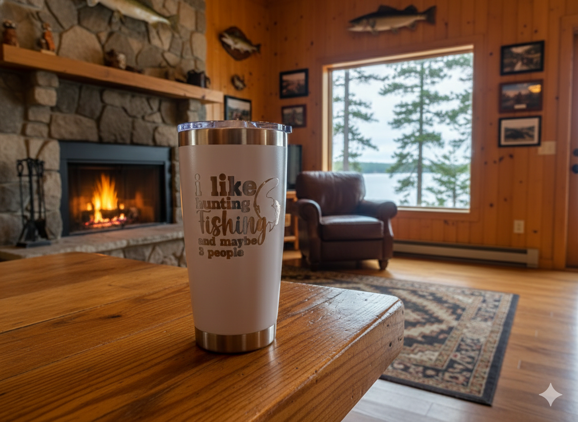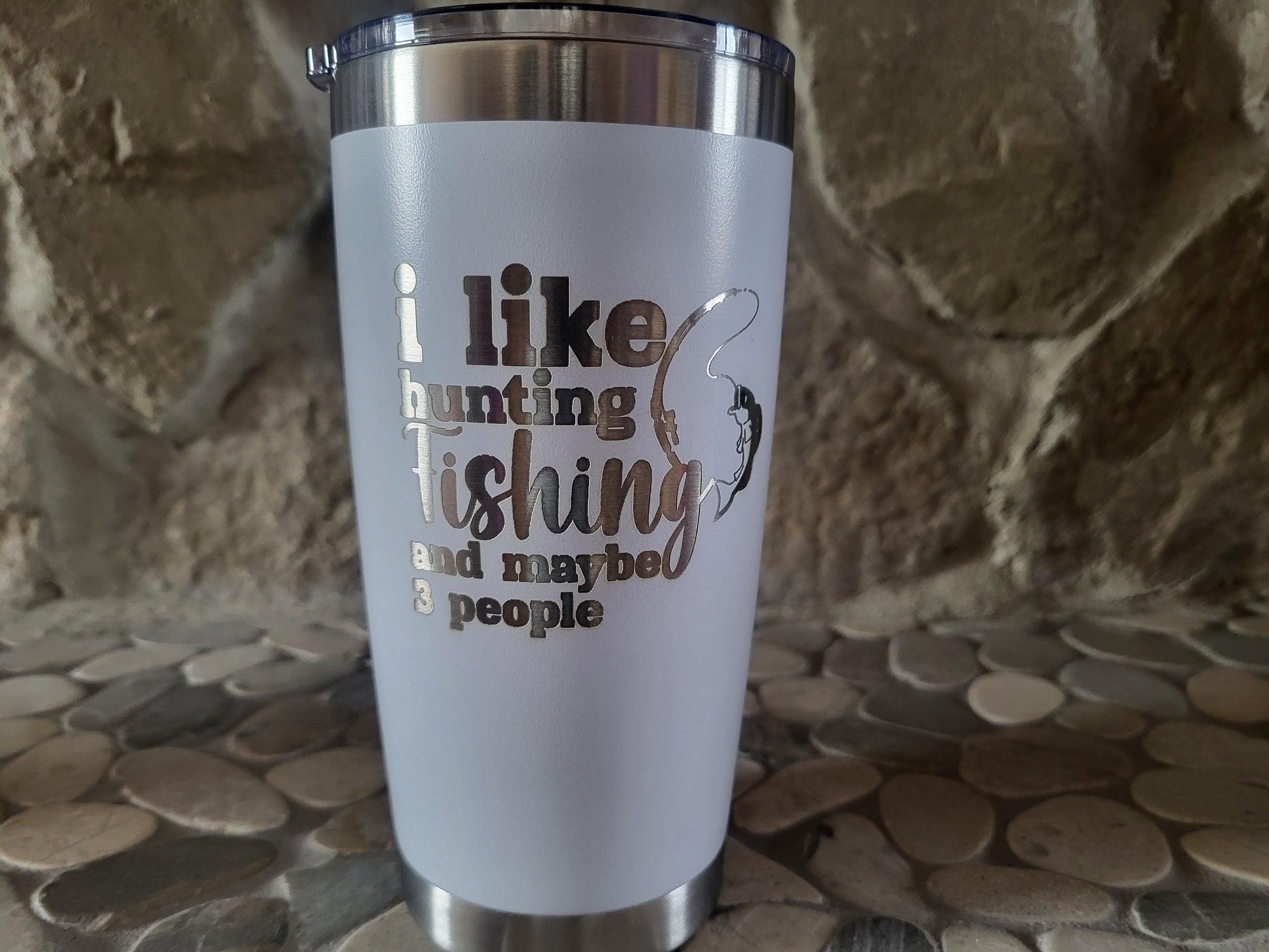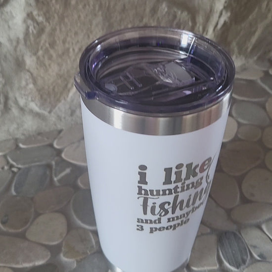 20 oz. stainless steel Tumbler. laser engraved with outdoorsman humor decorum.