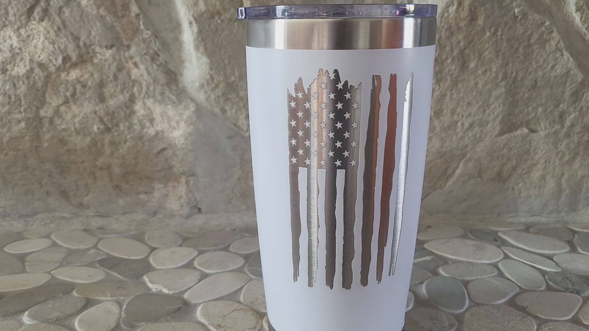 20 oz. stainless steel Tumbler. laser engraved with patriotic decorum.