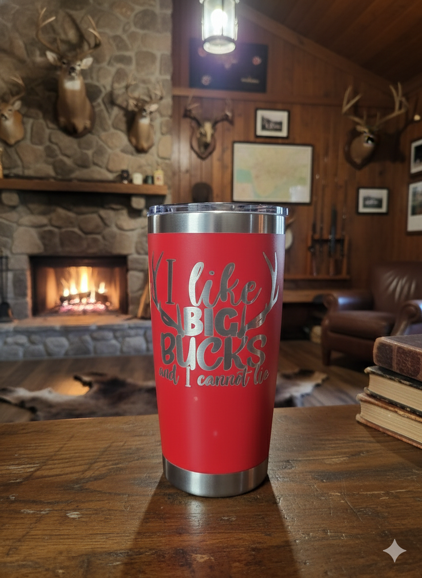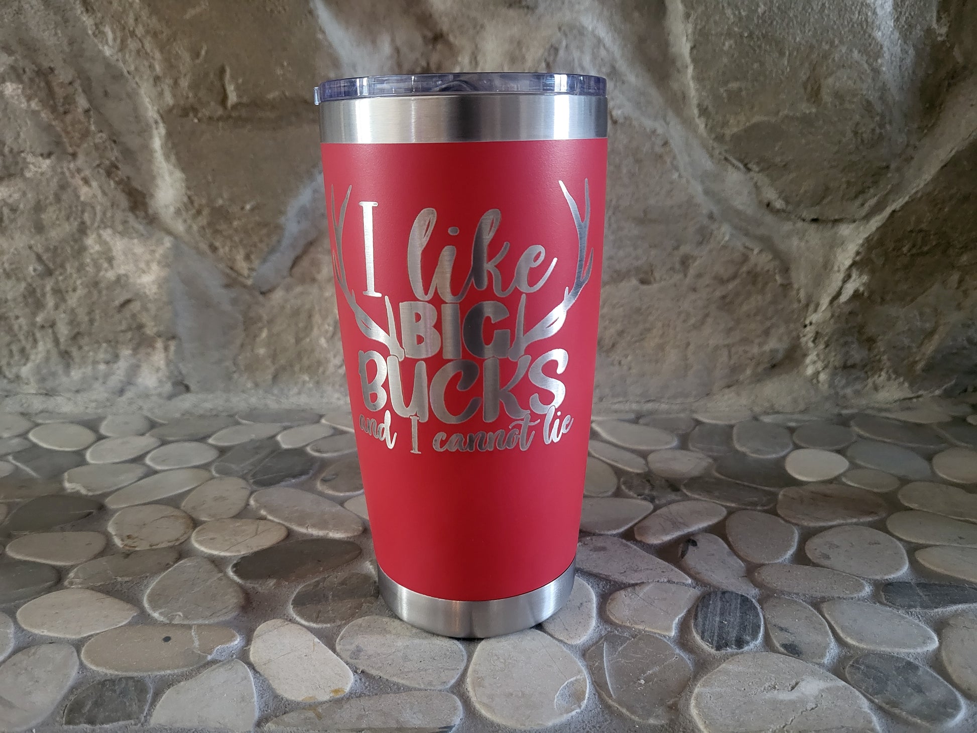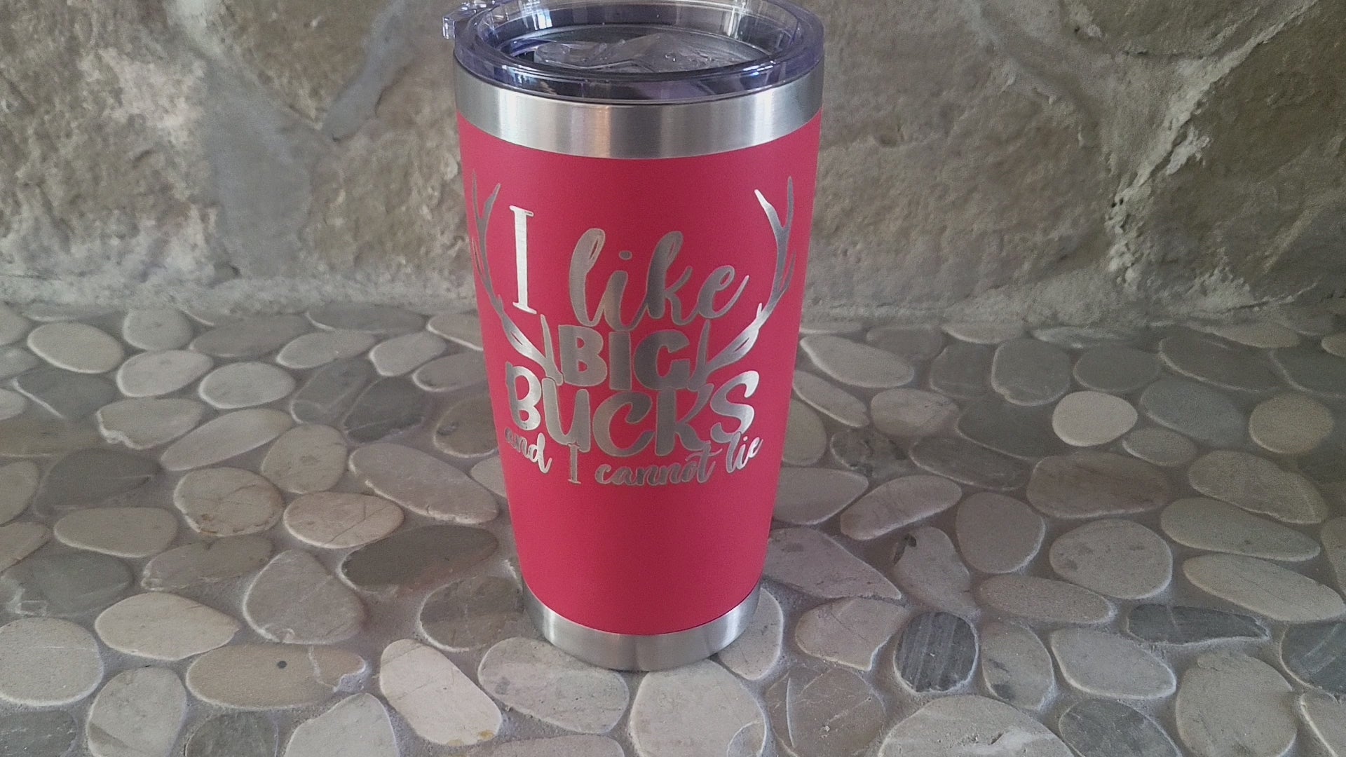 20 oz. stainless steel Tumbler. laser engraved with outdoorsman humorous decorum.