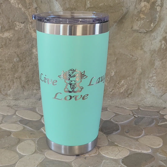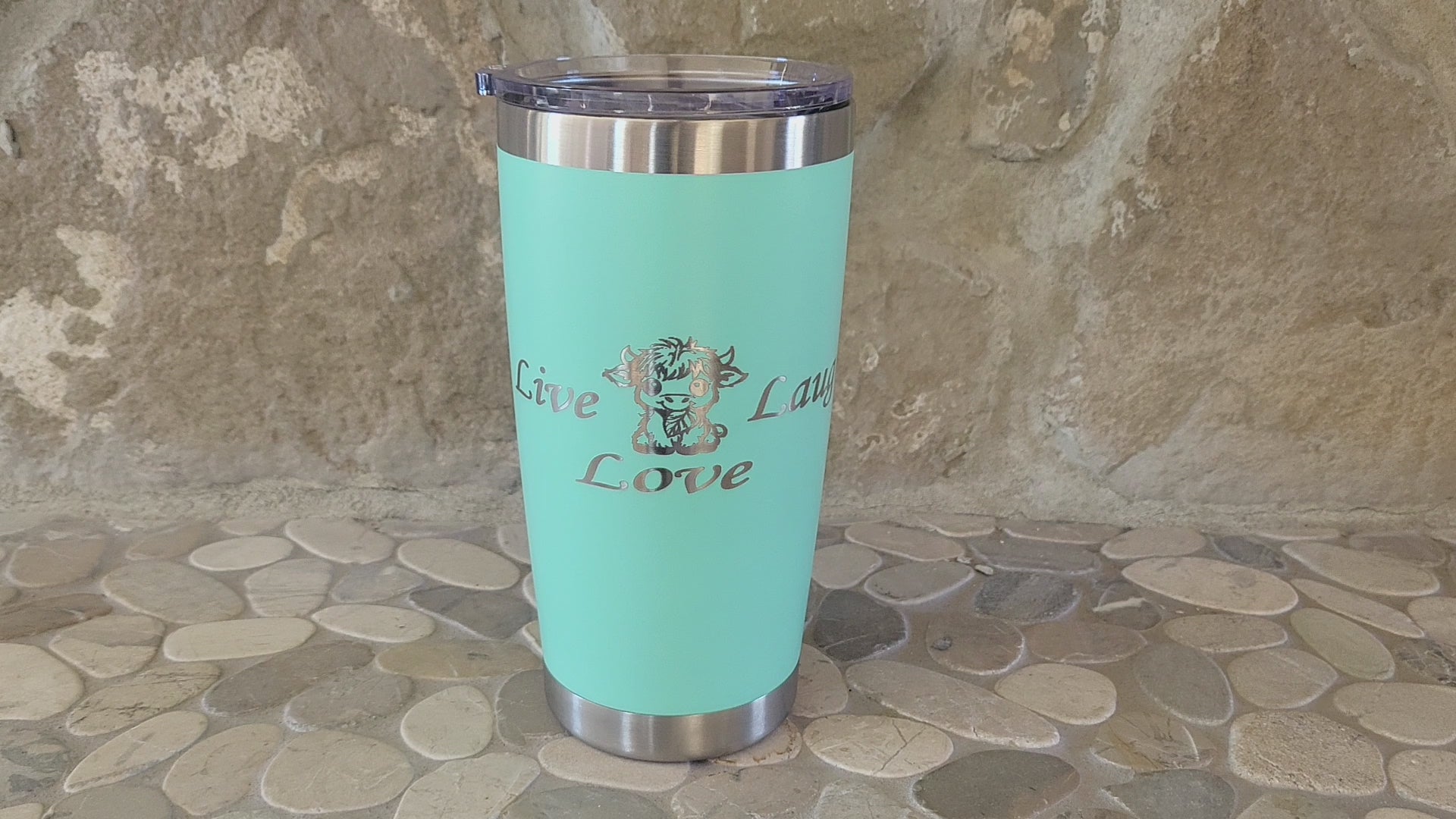20 oz. stainless steel Tumbler. laser engraved with seasonal decorum.