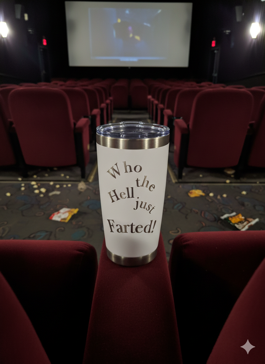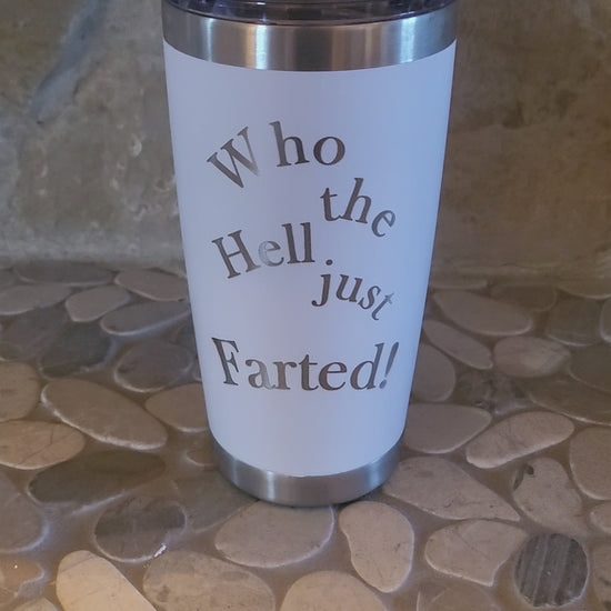 20 oz. stainless steel Tumbler. laser engraved with humorous decorum.